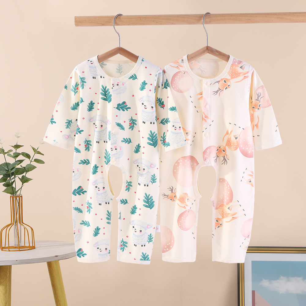 婴儿开裆哈衣纯棉春秋打底衣服新生儿爬爬服四季长袖宝宝连体衣
