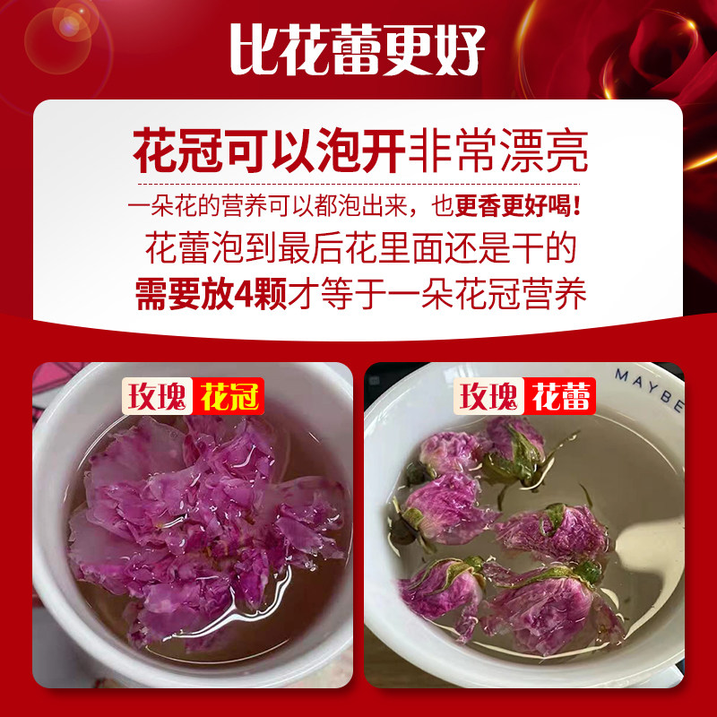 平阴玫瑰花茶干玫瑰低温无硫熏重瓣可食用玫瑰大朵泡水金芯花冠茶