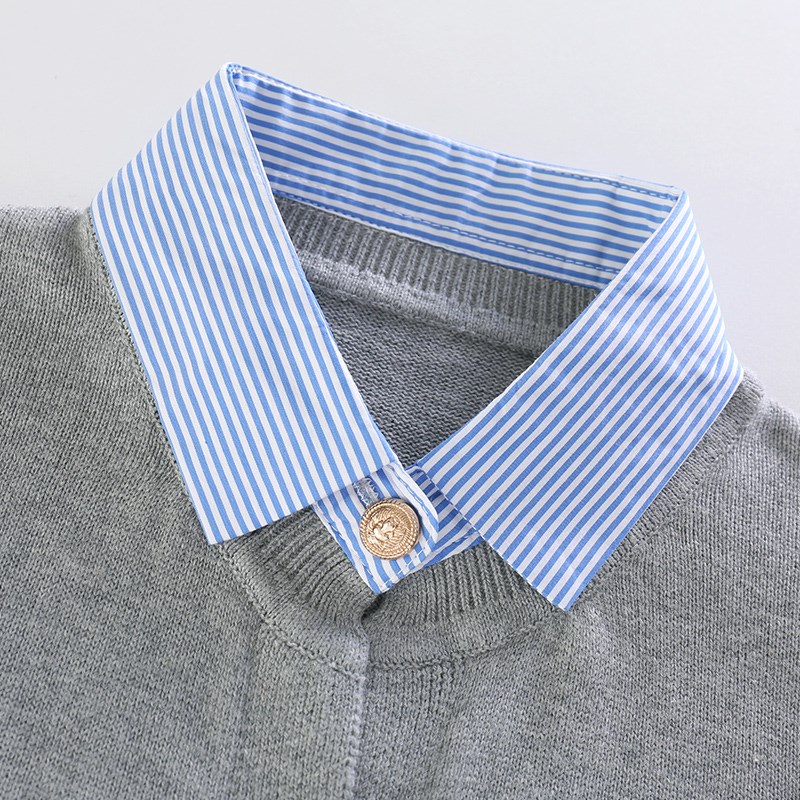 儿童针织开衫外套毛衣春秋款2025春装新款男童衬衫领假两件针织衫