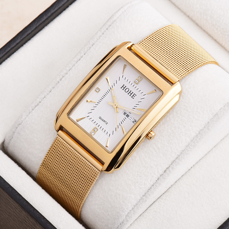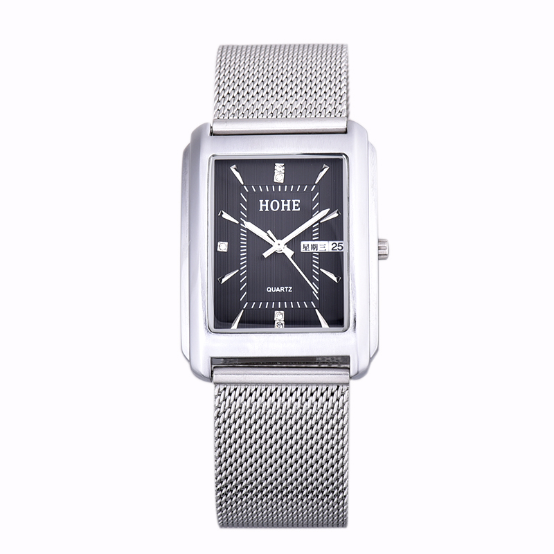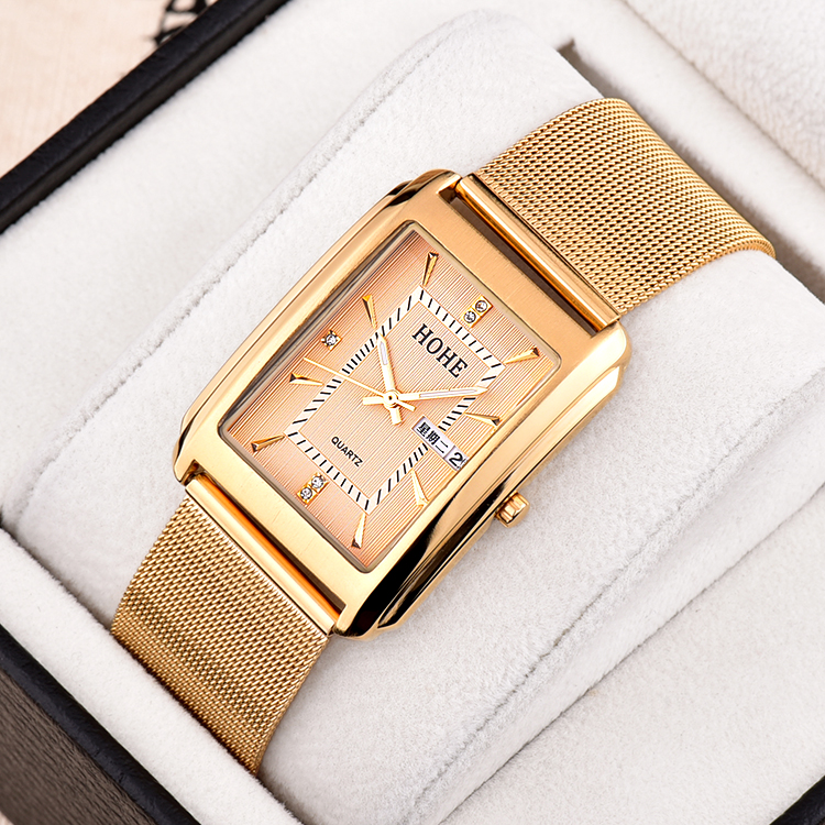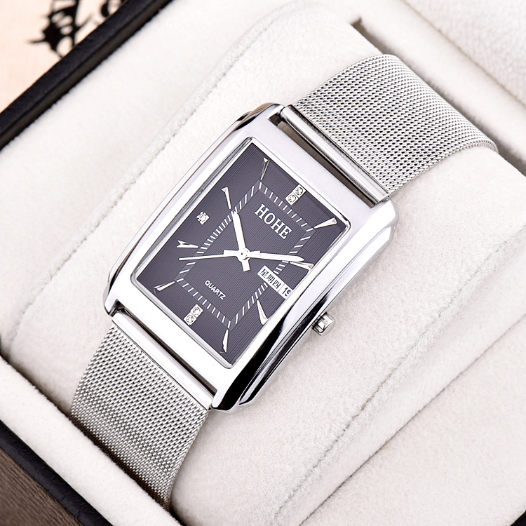 正品男士双历手表 超薄防水夜光腕表 长方形石英表 商务休闲男表