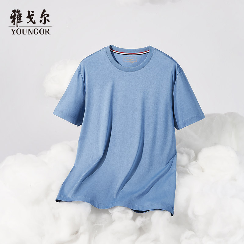 雅戈尔夏季男士凉爽短袖T恤休闲宽松圆领棉打底新疆棉T恤男女情侣
