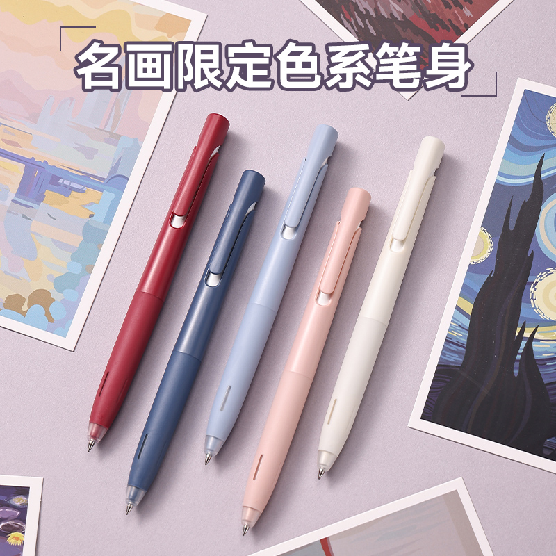 名画限定】日本zebra斑马中性笔blen低重心速干减震笔JJZ66按动 式黑笔0.5mm替芯中小学生高颜值