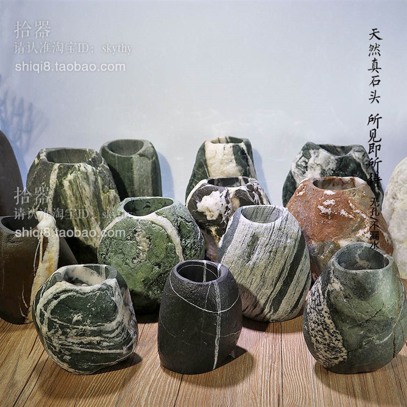 天然真石头花瓶水培花器自然花盆桌面花插鹅卵石盆茶笔筒拾器8587