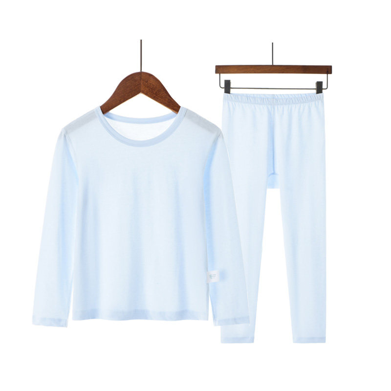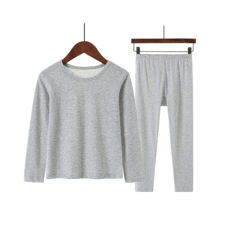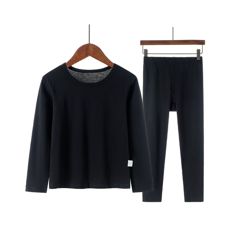 儿童纯棉内衣男女童薄款棉毛衫裤白黑色宝宝春秋打底秋衣秋裤套装