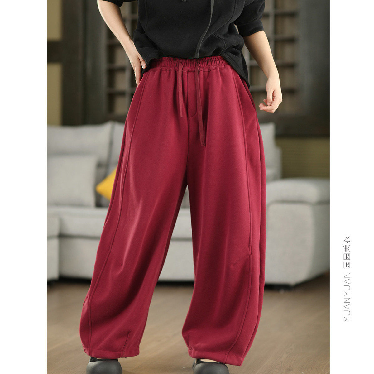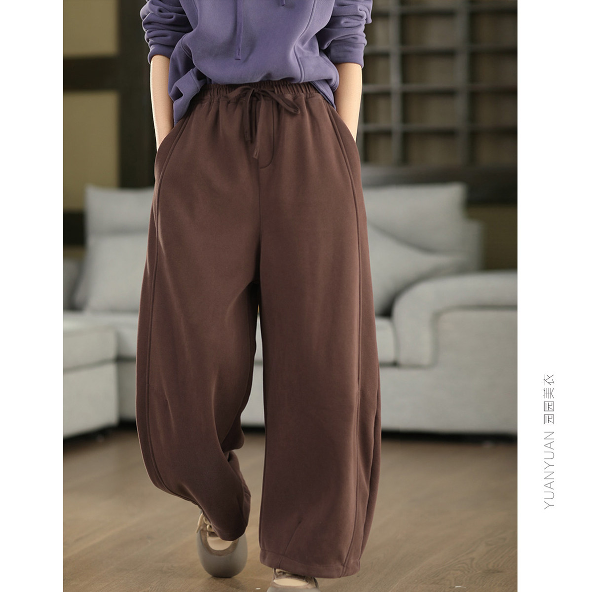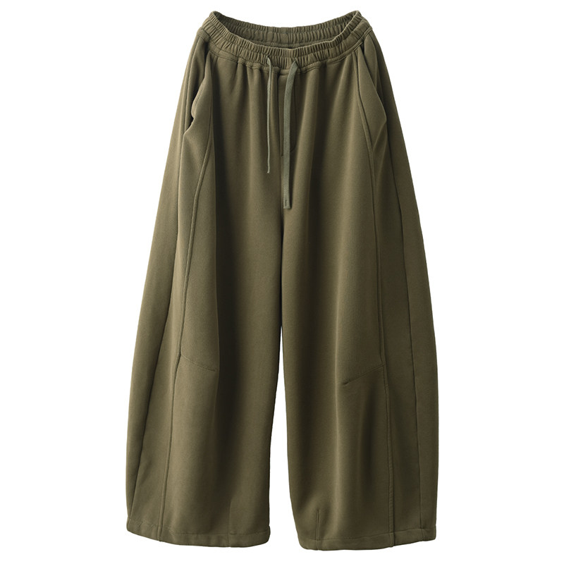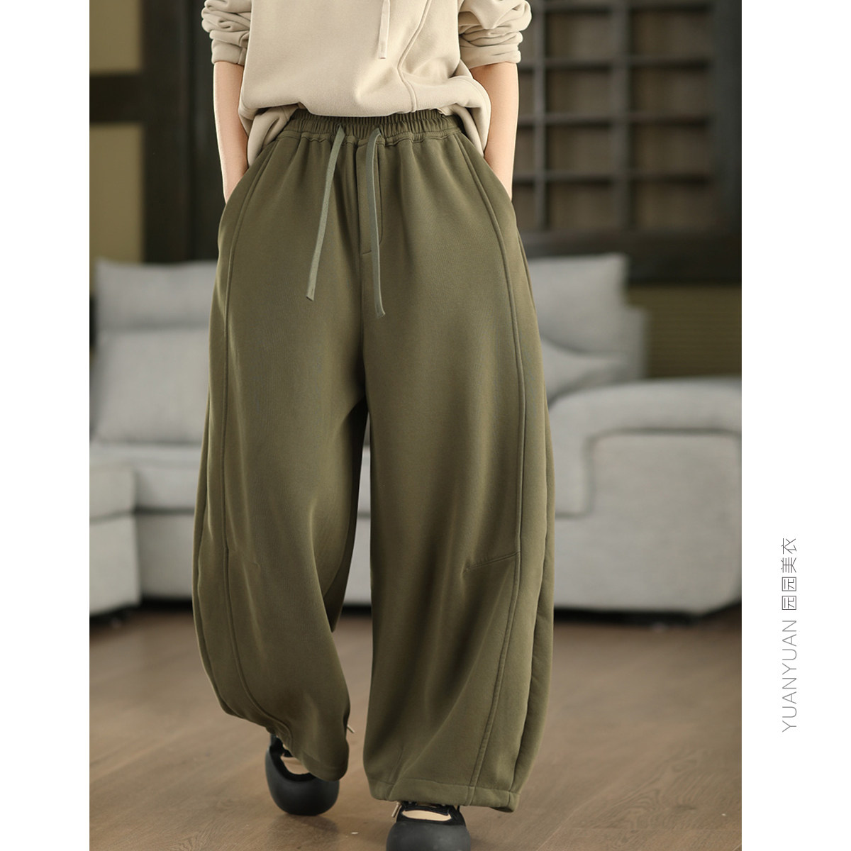 园园美衣冬季复古加绒加厚全棉卫裤显瘦弯刀裤加厚镰刀裤休闲长裤