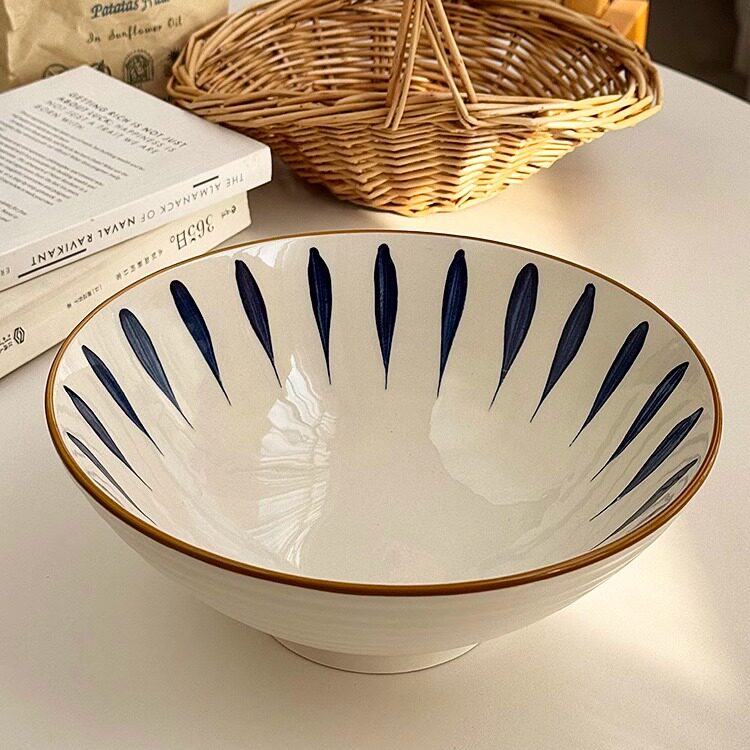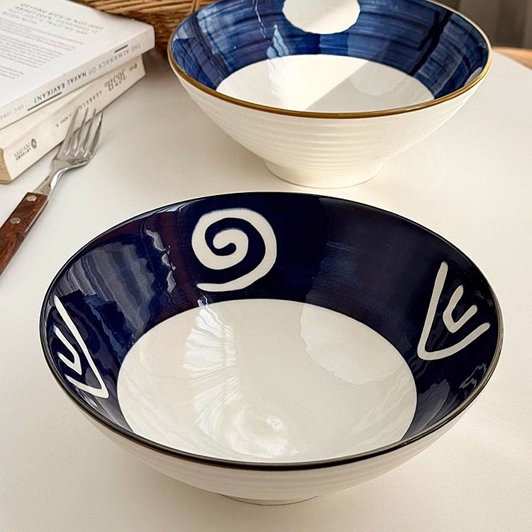 安木良品 大厂订单 ins日式和风釉下彩陶瓷8寸大碗家实用拉面汤碗