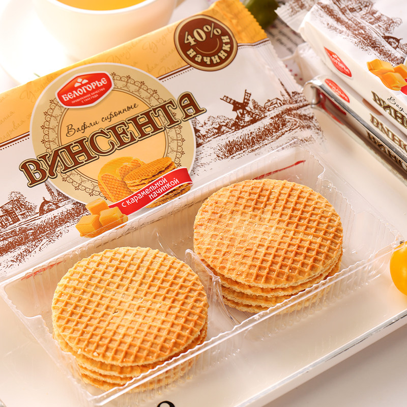 俄罗斯拉丝饼原装进口夹心饼干焦糖炼乳味华夫饼零食网红食品大全