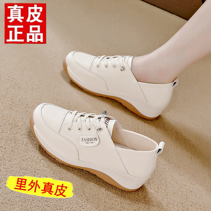 真皮运动鞋女2025年秋季新款厚底轻便旅游鞋百搭防滑休闲跑步鞋女