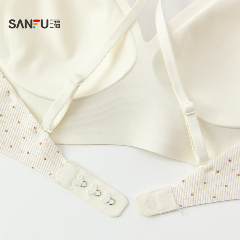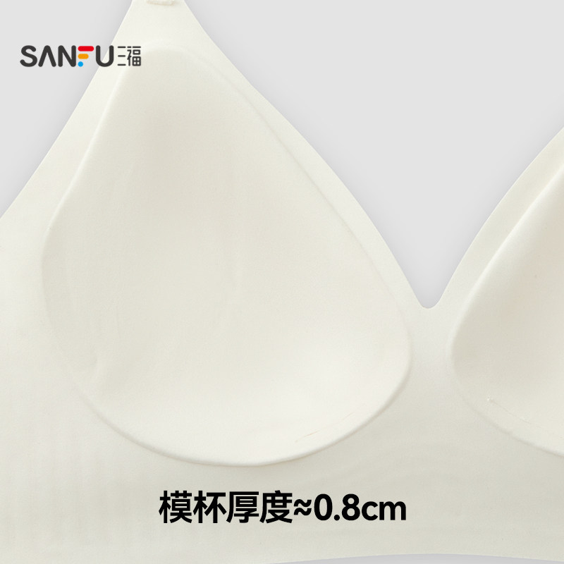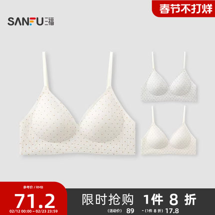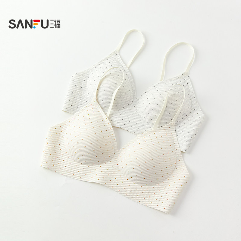 三福薄杯无钢圈聚拢文胸果冻条大露背女生胸罩舒适无感波点内衣女