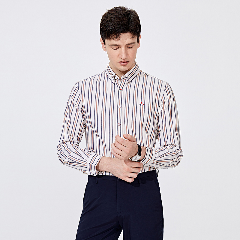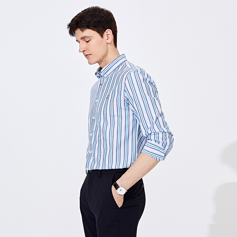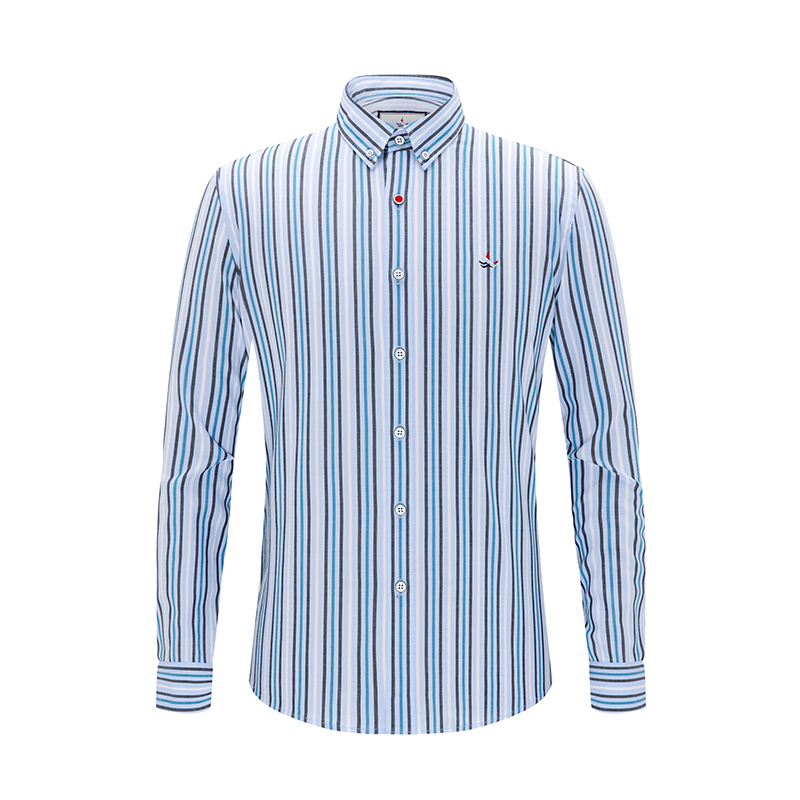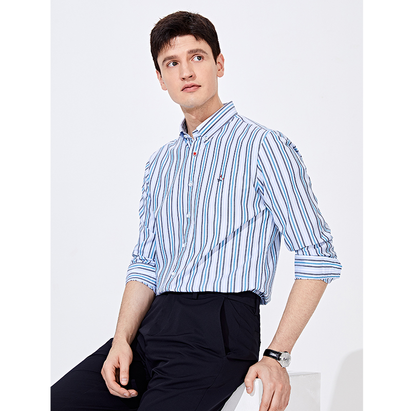 Navigare意大利小帆船蓝色高级感衬衫男长袖秋季薄款条纹打底衬衣