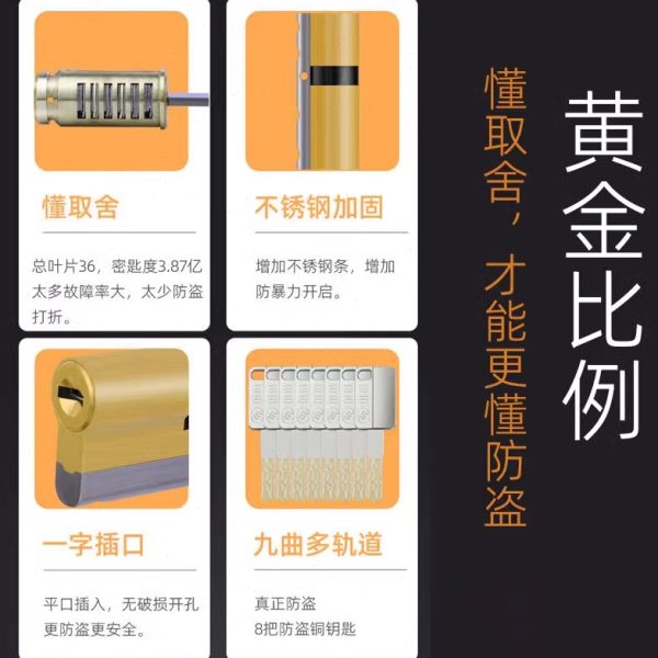 玥玛防盗门锁芯超C级锁芯多轨道入户门钢质门通用锁芯防盗锁芯750