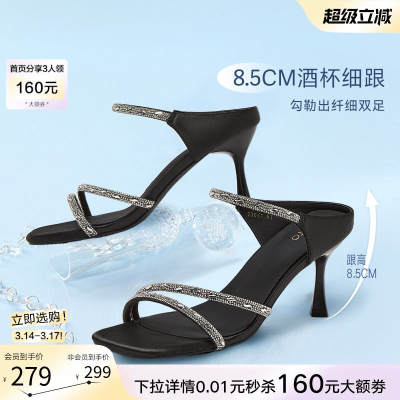百思图夏季商场新款气质优雅一字带细跟高跟鞋女凉鞋E5061BL5
