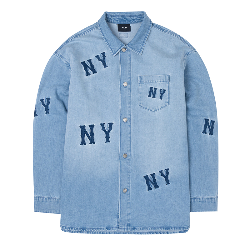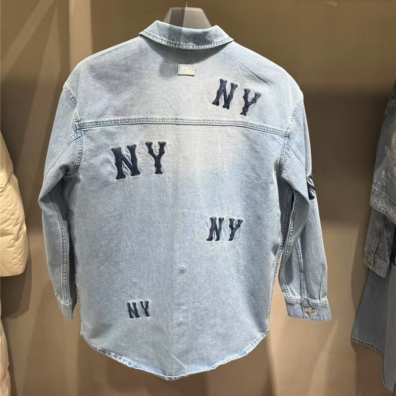 MLB新款男女运动休闲翻领时尚刺绣百搭长袖牛仔衬衫外套3ADRG0351