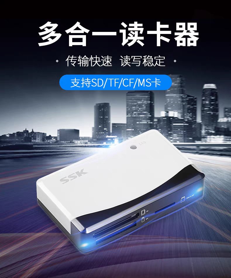 SSK 多功能多合一读卡器 高速读手机TF CF MS SD卡