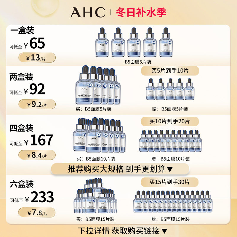 AHC B5玻尿酸小安瓶面膜4盒补水保湿灌注舒缓护肤官方旗舰店正品