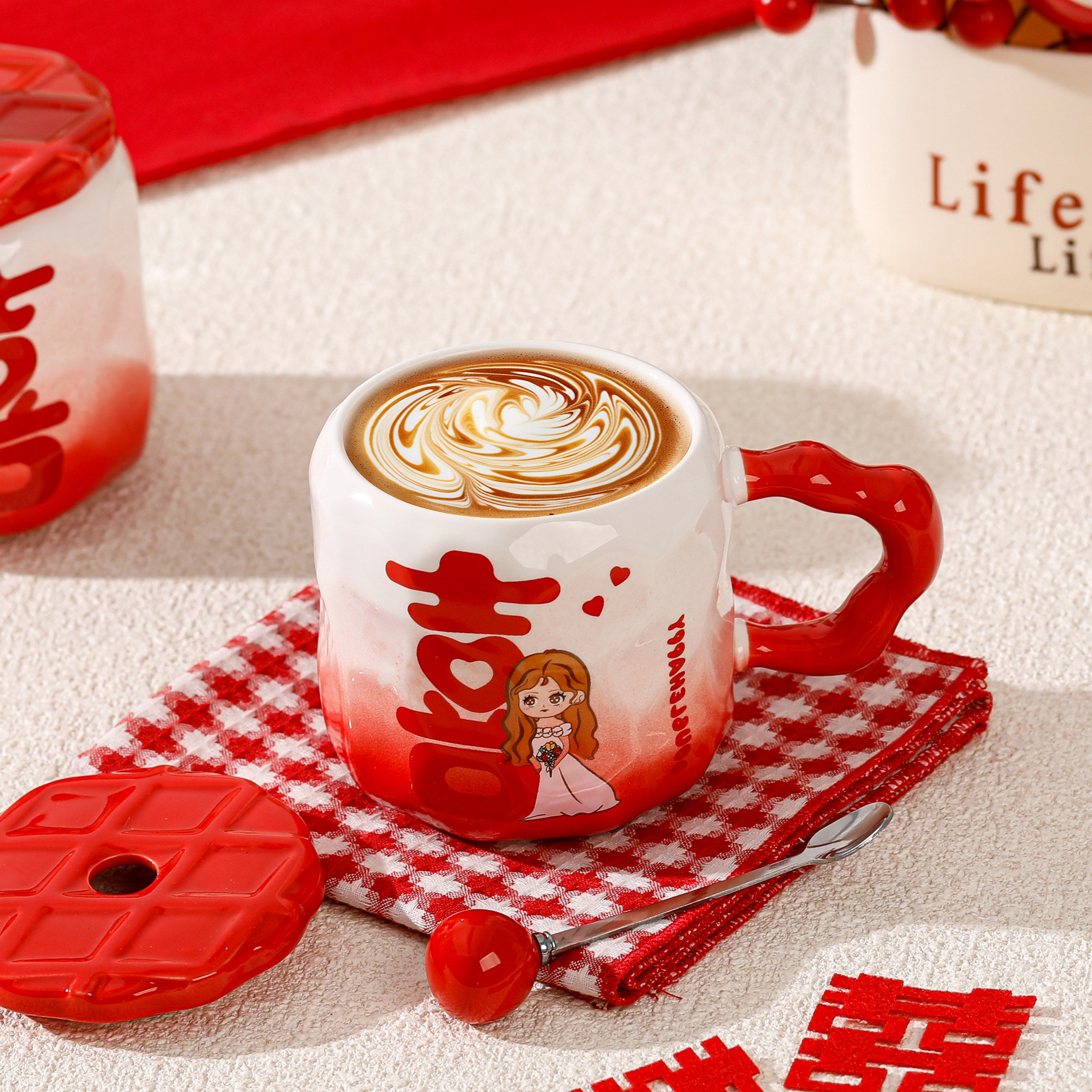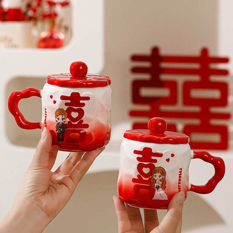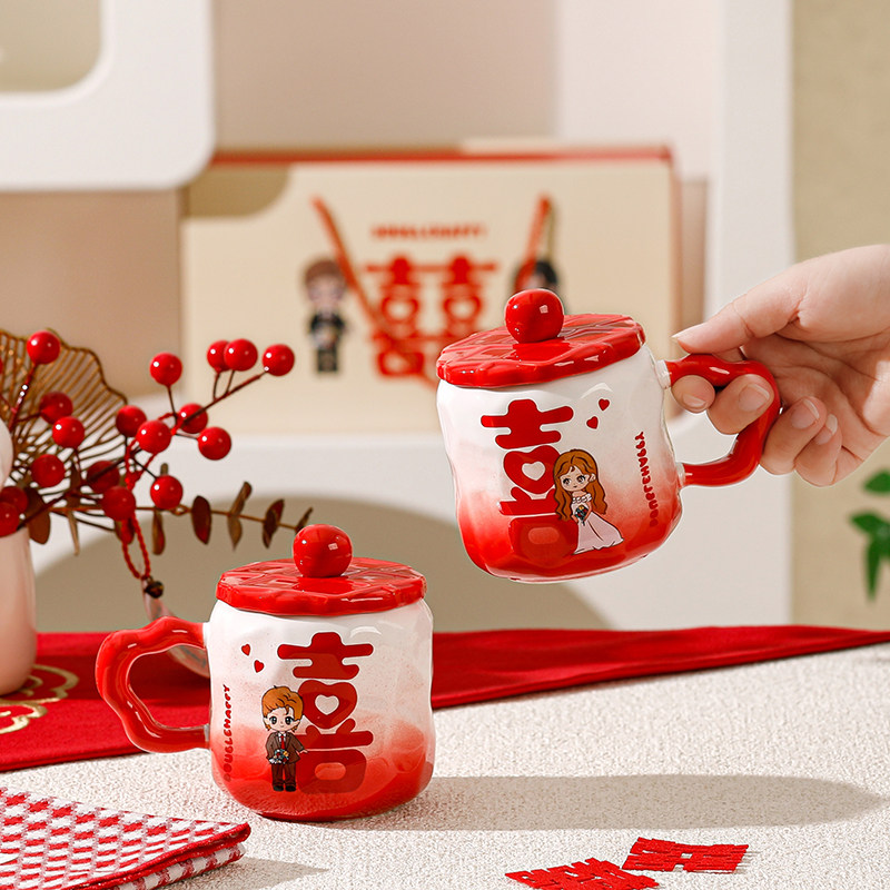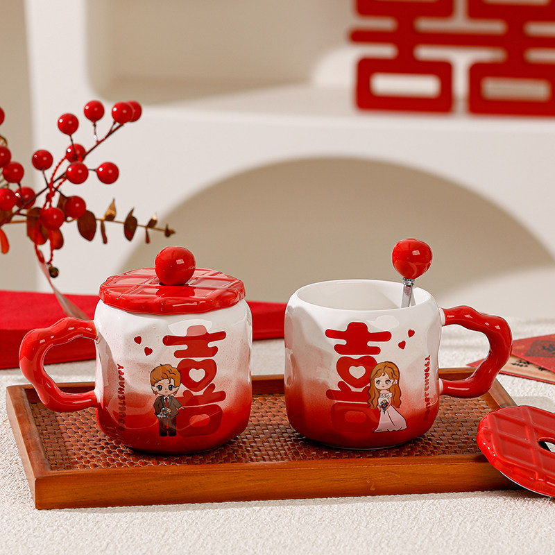 结婚礼物喜字对杯情侣马克杯新婚订婚送新人闺蜜实用伴手礼陶瓷杯