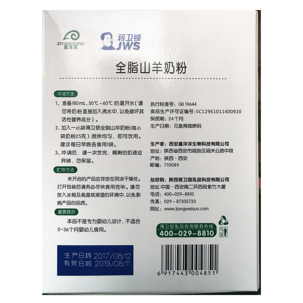 蒋卫锁纯山羊奶粉少儿女士男士中老年无糖0添加16小包400克买5赠1