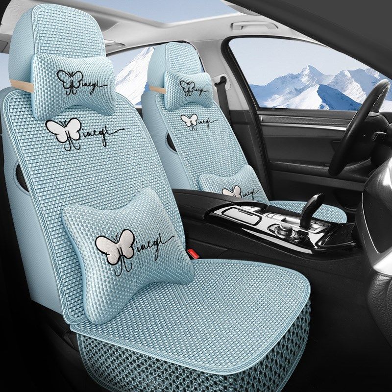 北京现代朗动瑞纳悦动ix25名图ix35冰丝汽车座套卡通全包夏季坐垫