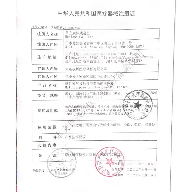 美尼康护理液240ml硬性隐形眼镜护理液ab液7组角膜塑性ok镜目立康