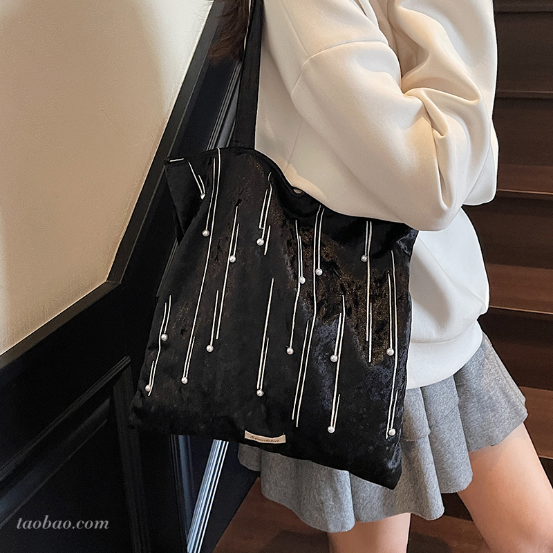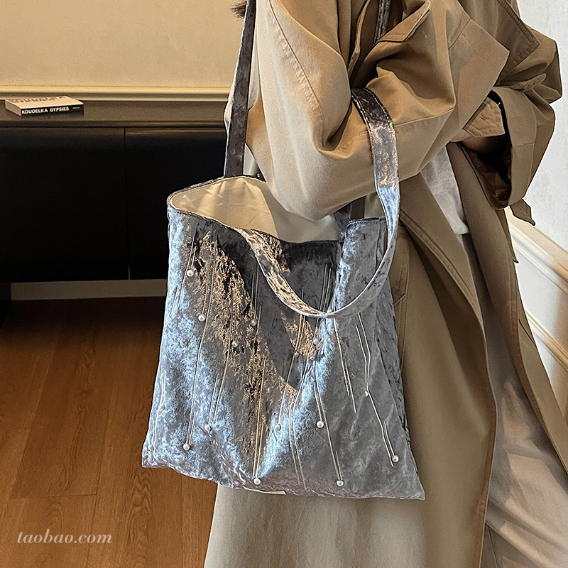 休闲大容量包包女2025新款通勤单肩包轻便百搭托特包秋冬丝绒布包