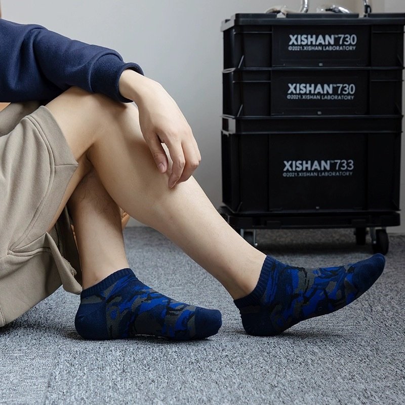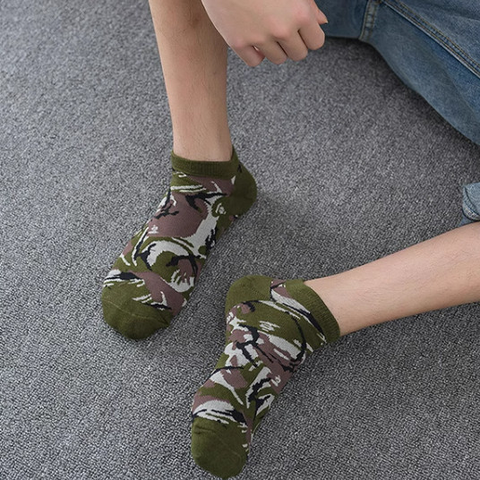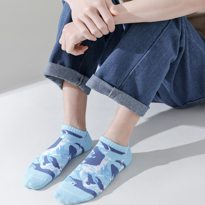 男士迷彩袜子夏季纯棉防臭短袜船袜薄款潮袜女运动袜刺绣男袜透气