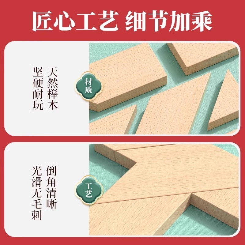 榉木长条T字之谜益智玩具四巧板智力木制积木拼图七巧板儿童拼板