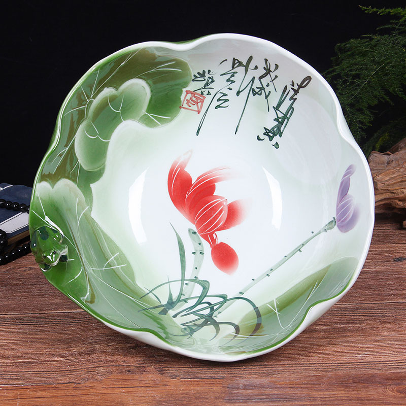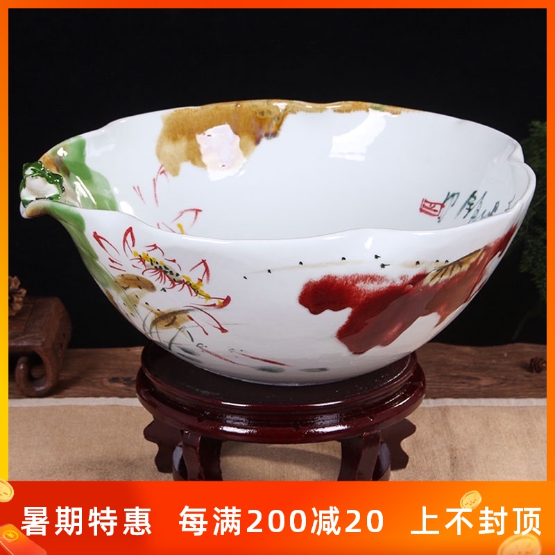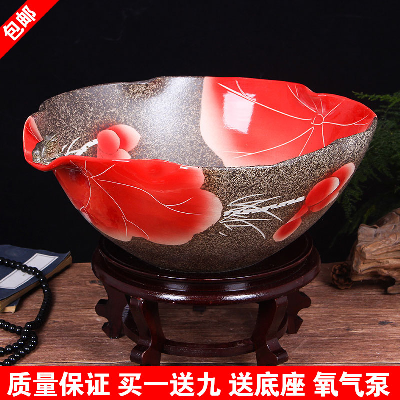 速发景德镇陶瓷鱼缸手绘桌面摆件大号养缸乌龟睡莲荷花盆