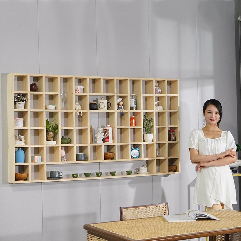 定制实木格子架书架墙上置物架收纳柜茶壶架小饰品架简约异形创意