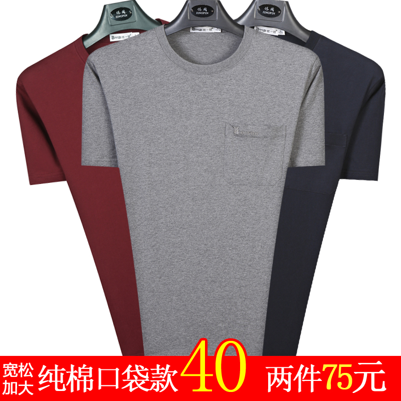 中年男士短袖t恤圆领夏天40-50岁中老年人男装纯棉T恤口袋爸爸装