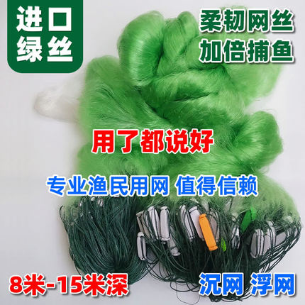绿丝8米10米15米高100米三层水库渔网鱼网粘网丝网沉网浮网捕鱼网