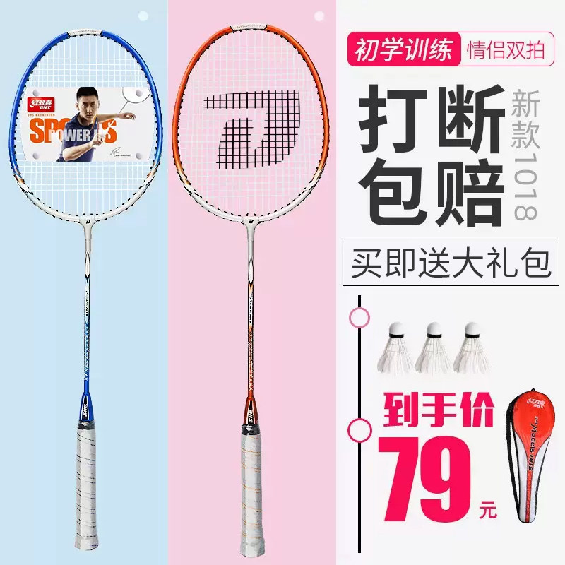 红双喜羽毛球拍双拍成人进攻耐用型初学者套装1018对拍双拍
