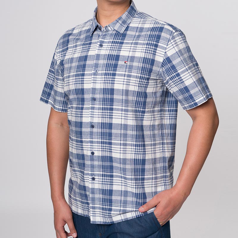 嘉意夏季新款衬衣棉麻透气短袖宽松中老年男士爸爸格子衬衫A50028