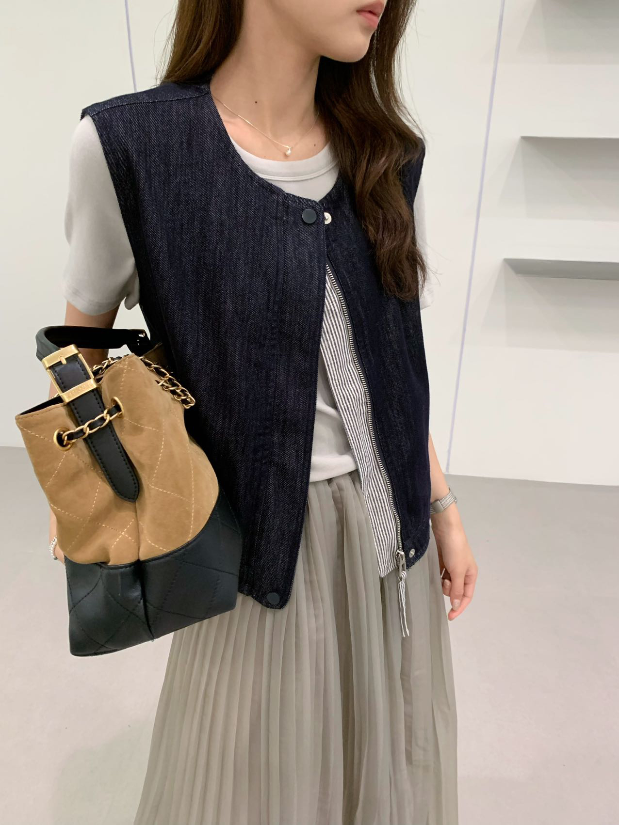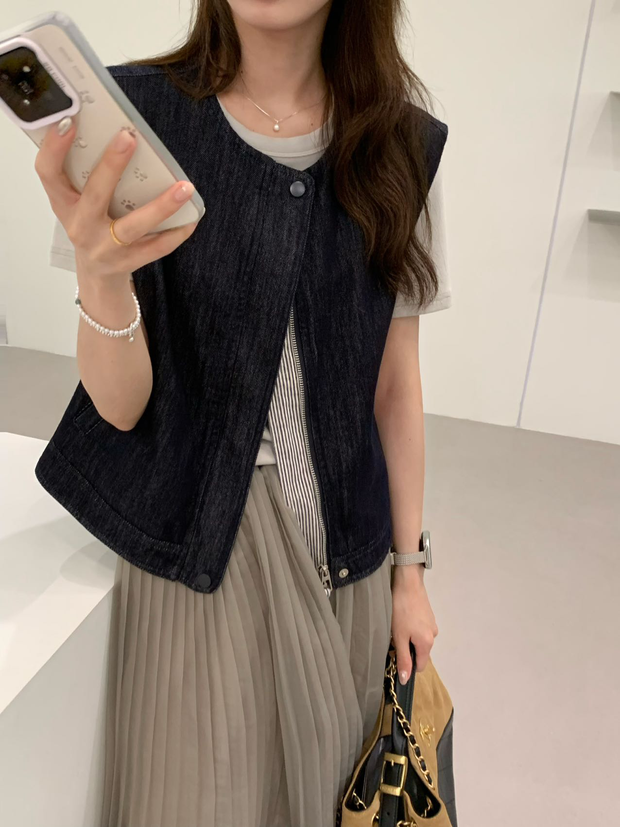 YOYO-新款圆领牛仔马甲女韩系宽松设计感上衣潮款马甲