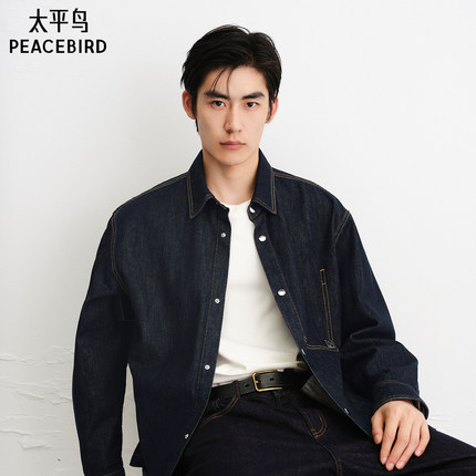 太平鸟男装 休闲衬衫2025秋季新款牛仔衬衫明线撞色时尚男士衬衫