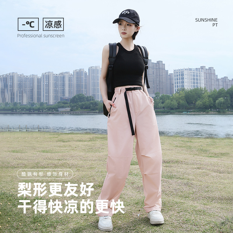 夏季速干伞兵裤女户外冰感防紫外线透气防晒裤徒步运动登山工装裤