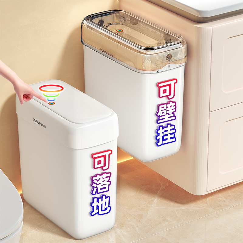 佳帮手卫生间厕所垃圾桶家用2025新款带盖夹缝客厅大容量厨房卧室