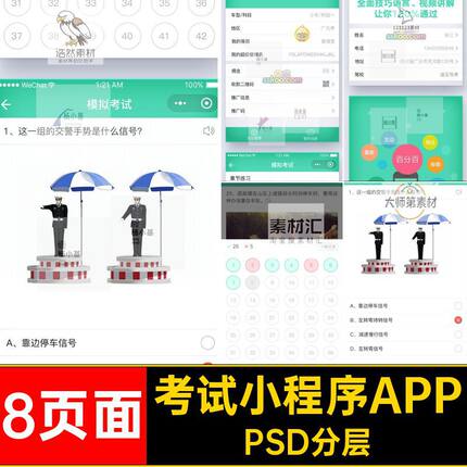 中文驾考学习小程序APPPSD分层UI驾校界面8页面微信模板考试app