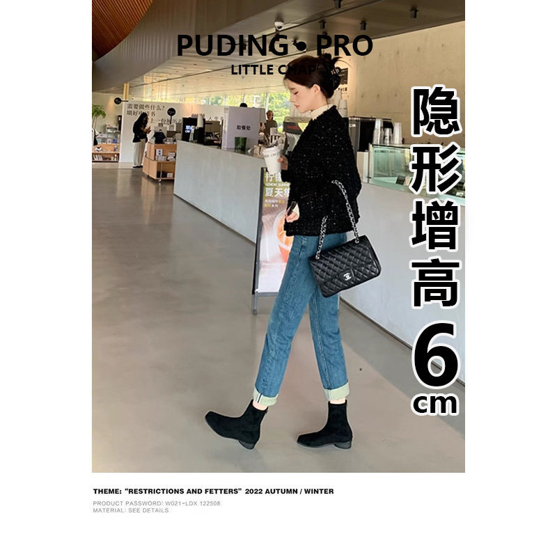 内增高复古方头绒面粗跟短靴女单靴2025秋冬新款小个子棕色瘦瘦靴