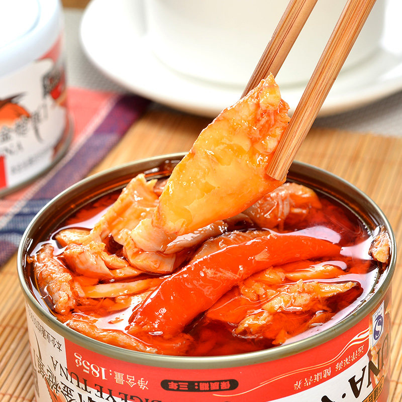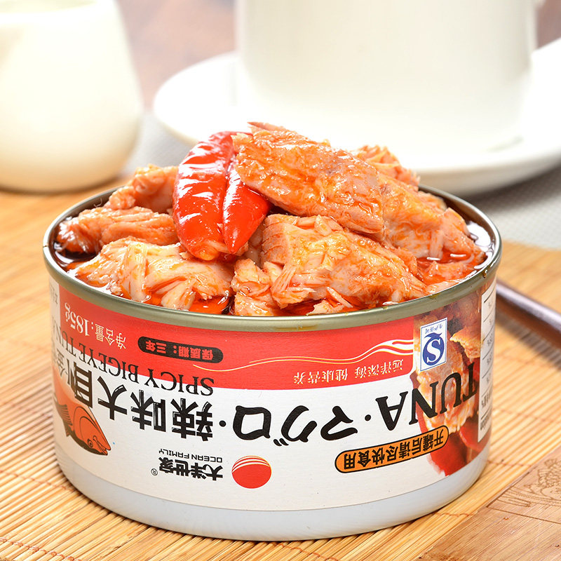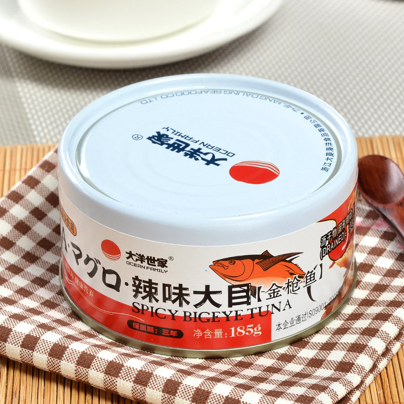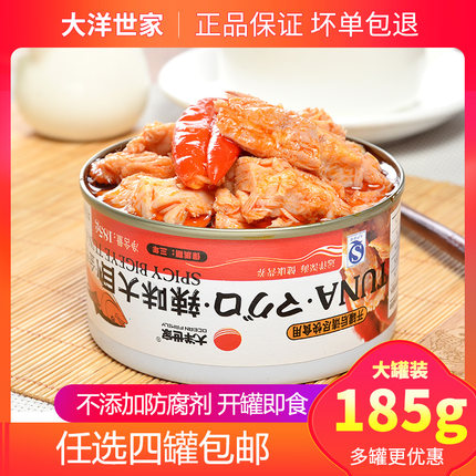 【满4罐包邮】大洋世家辣味大目金枪鱼罐头185g吞拿鱼罐海鲜即食