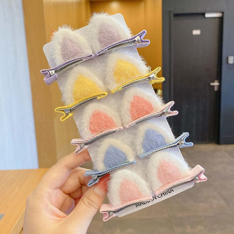 毛绒猫咪发夹女猫耳朵小夹子头饰儿童可爱网红毛毛发卡顶夹鸭嘴夹