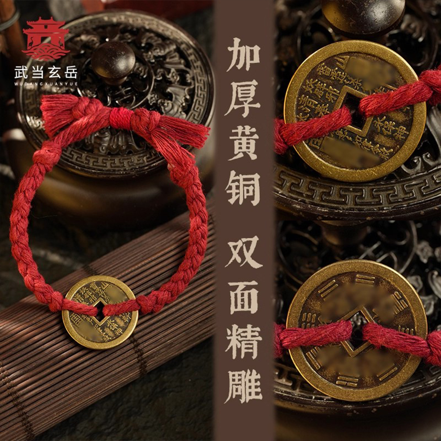 【武当山】直发山鬼花钱手链转运护身平安复古铜钱本命年红绳手绳