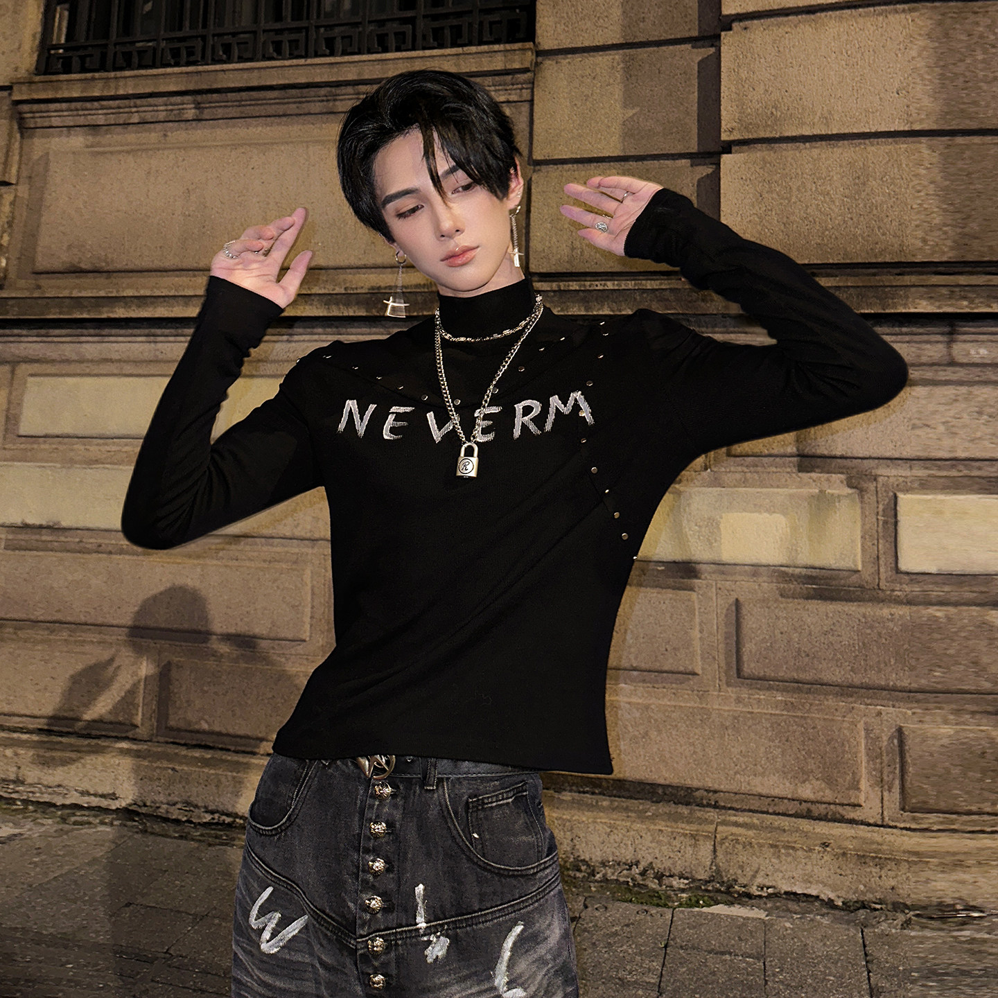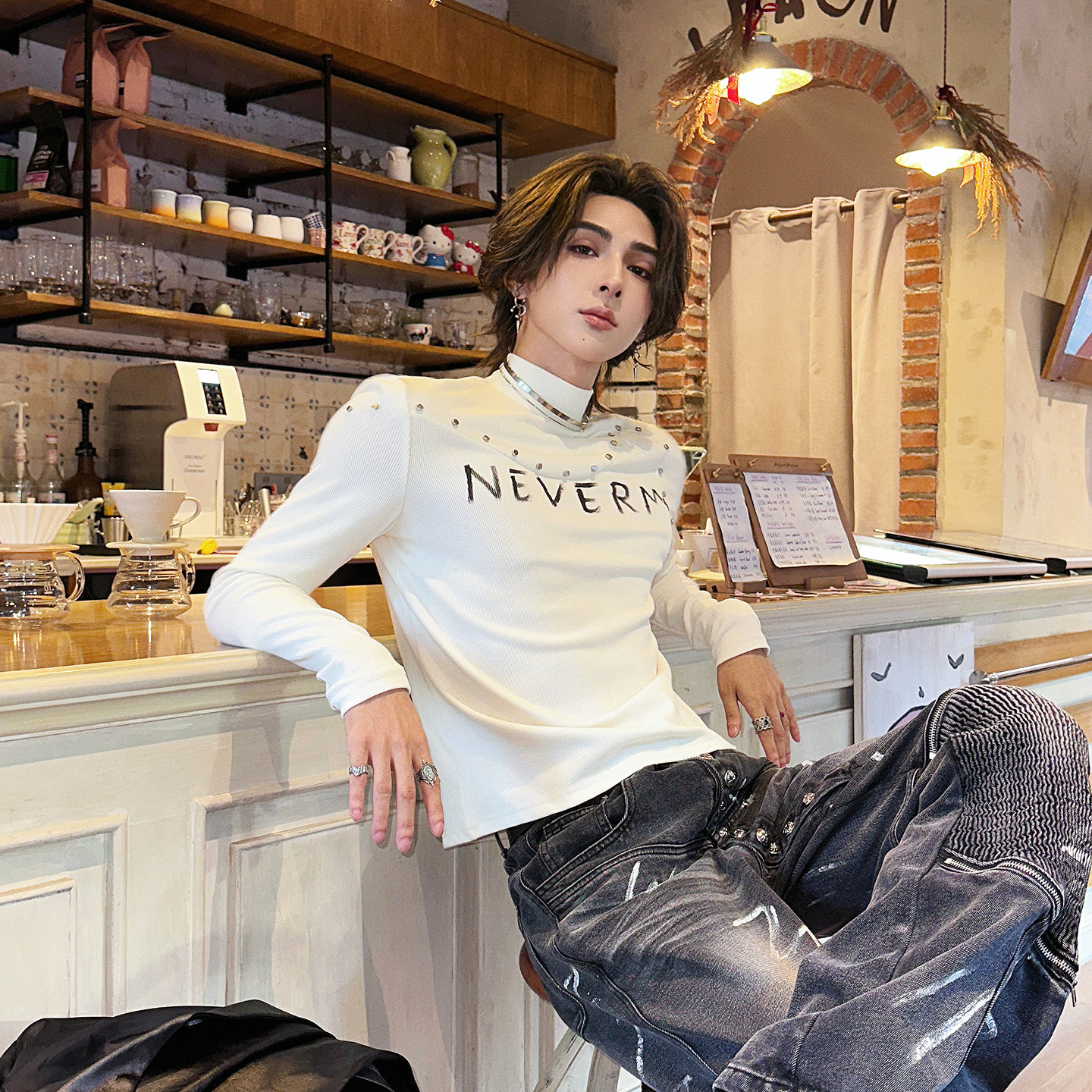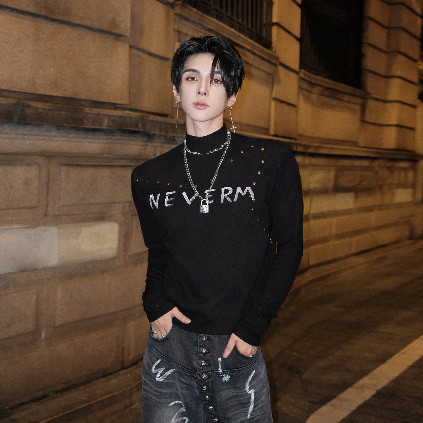 杨一帆潮牌针织衫打底衣半高领男款秋季新款休闲T恤女士春季长袖