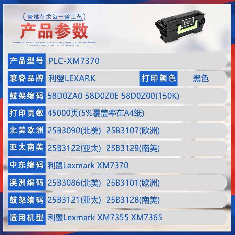 适用25B3090利盟XM7355鼓架XM7365墨粉盒XM7370打印机墨盒25B3086