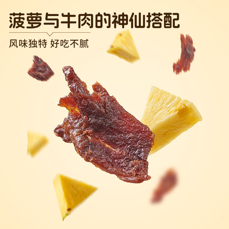 来伊份菠萝牛肉酸甜味即食手撕肉片肉脯解馋休闲零食冷吃风干熟食
