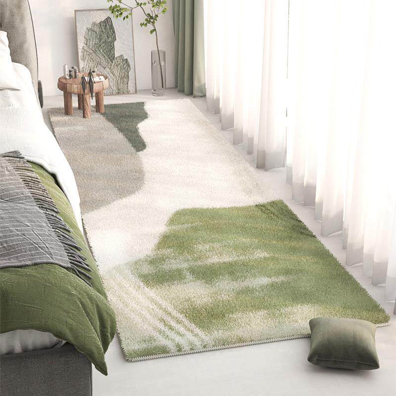 长条床边毯绿色侘寂客厅地毯羊羔绒卧室床前沙发茶几毯飘窗地垫