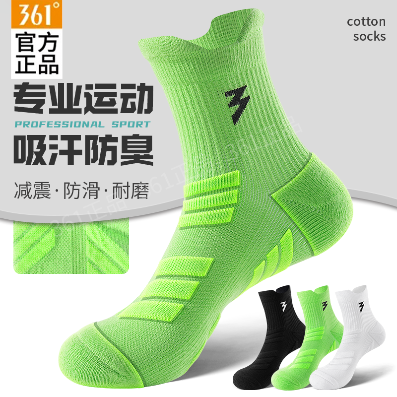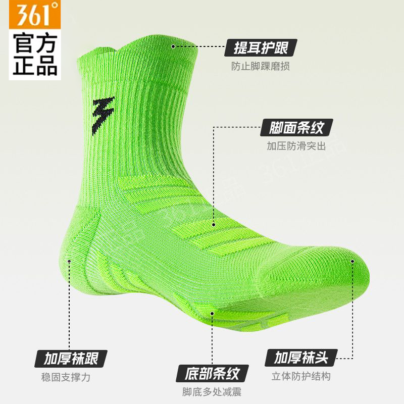 361°正品男袜专业马拉松跑步袜毛巾底加厚长袜吸汗长筒运动袜子