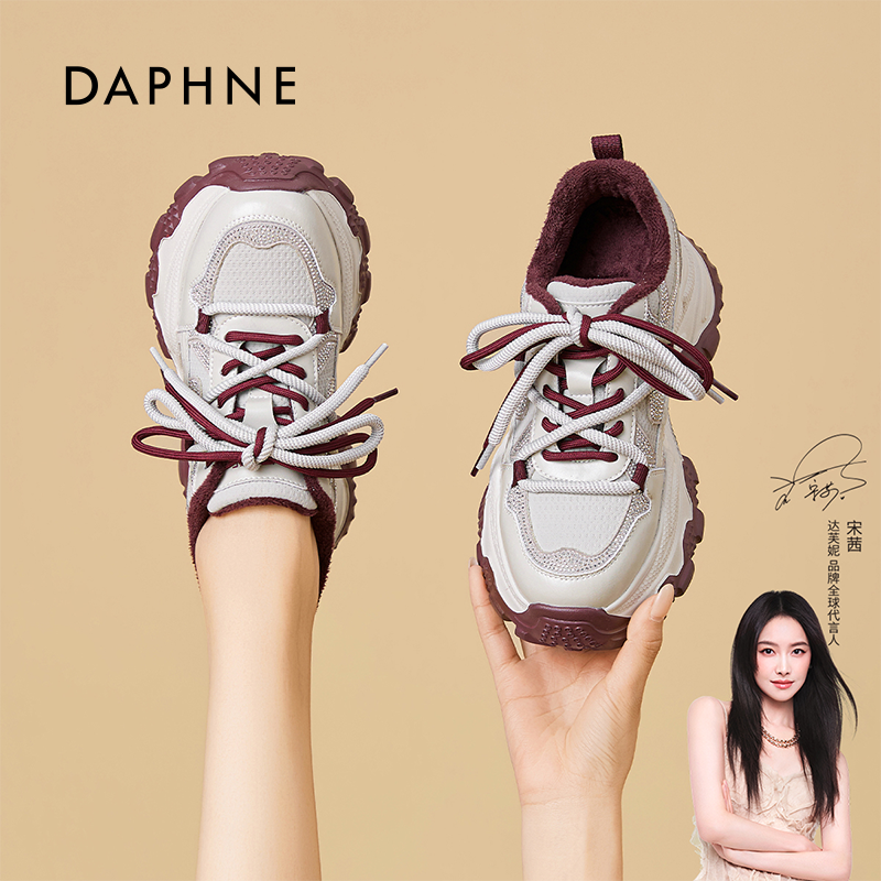 达芙妮加绒老爹鞋2026春季新款时尚保暖运动鞋女鞋百搭增高休闲鞋