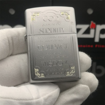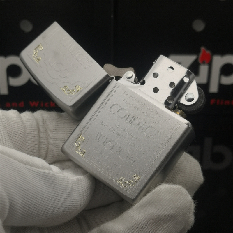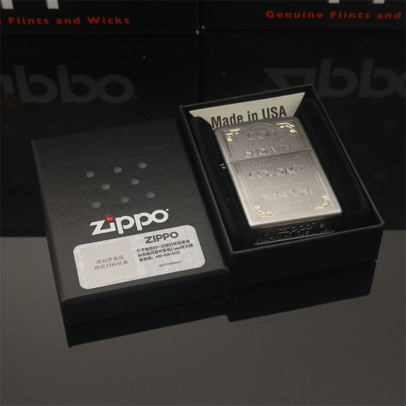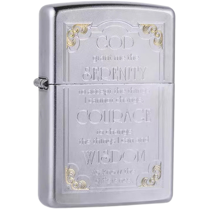 官正品ZIPPO芝宝美国原版防风砂轮煤油打火机镀铬磨砂刻警世箴言