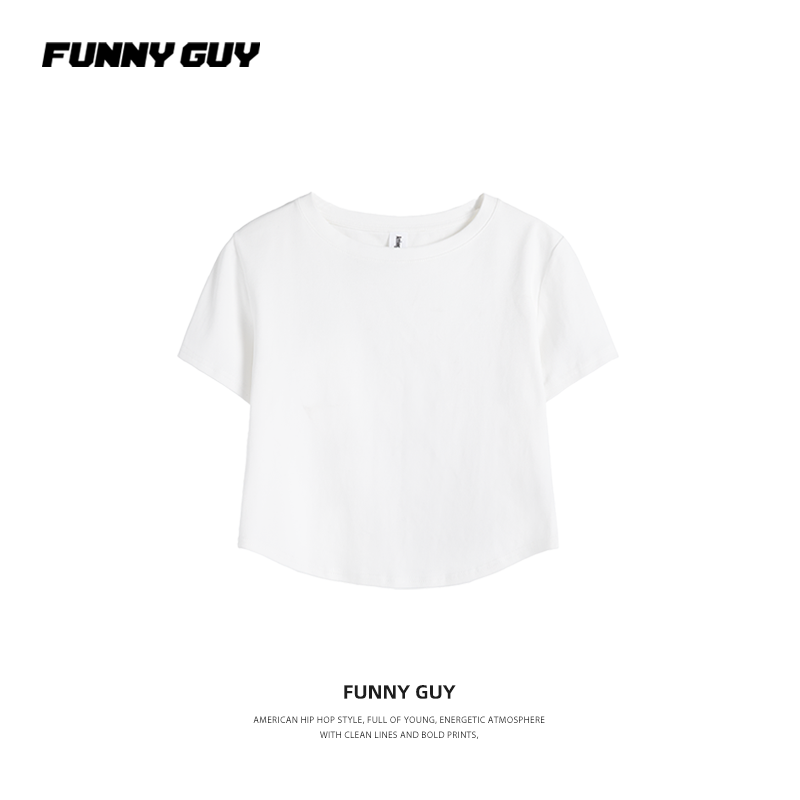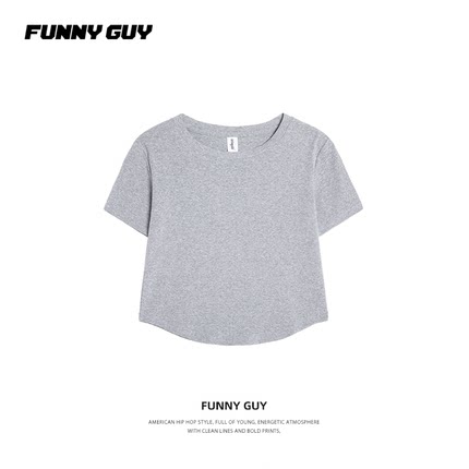 HUNNY GUY纯色基础款露脐T恤黑白灰短袖男女2025夏季休闲百搭上衣