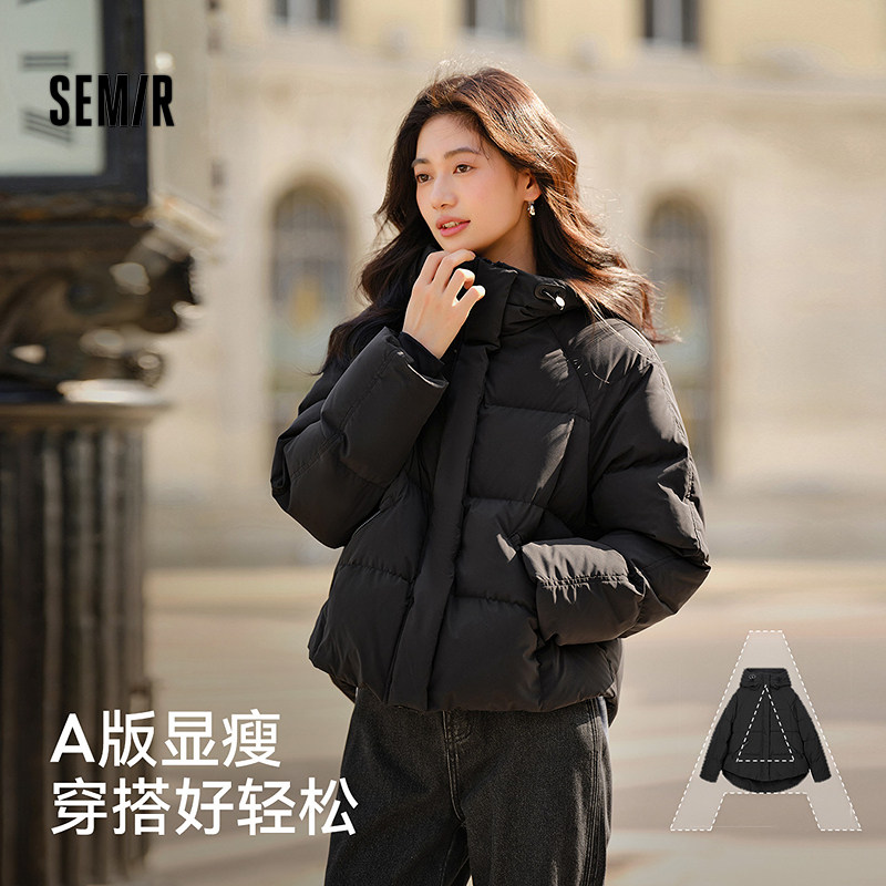 轻松羽绒|森马羽绒服女宽松连帽面包服时尚2025冬防泼水防风外套